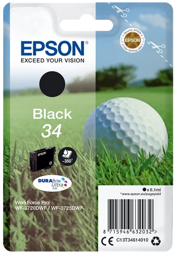 €26.19Beste Qualität zum besten Preis – Original Epson 34 / C13T34614010 Tinte Schwarz bis zu 350 Seiten 6ml – Original Epson WorkForce Pro Tinte – Schwarz – Jetzt günstig kaufen!