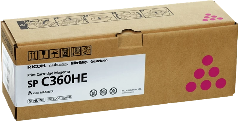 €102.51Beste Qualität zum besten Preis – Original Ricoh SP C360HE / SPC360HEM Toner Magenta bis zu 5000 Seiten – Original Ricoh SP Toner – Magenta – Jetzt günstig kaufen!