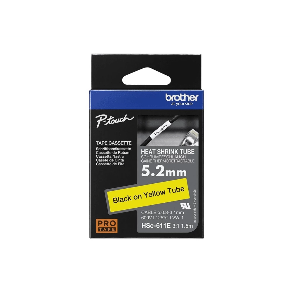 Brother HSe-611E – Schwarz auf Gelb – Rolle (0,52 cm x 1,5 m)