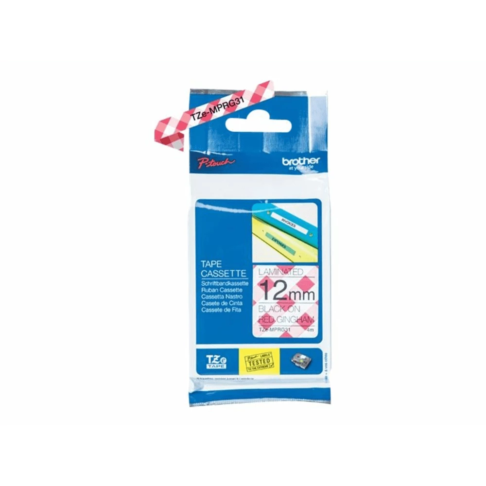 Brother Tze Mprg31 Schwarz Auf Rotem Gingham Rolle 12 Cm X 4 M