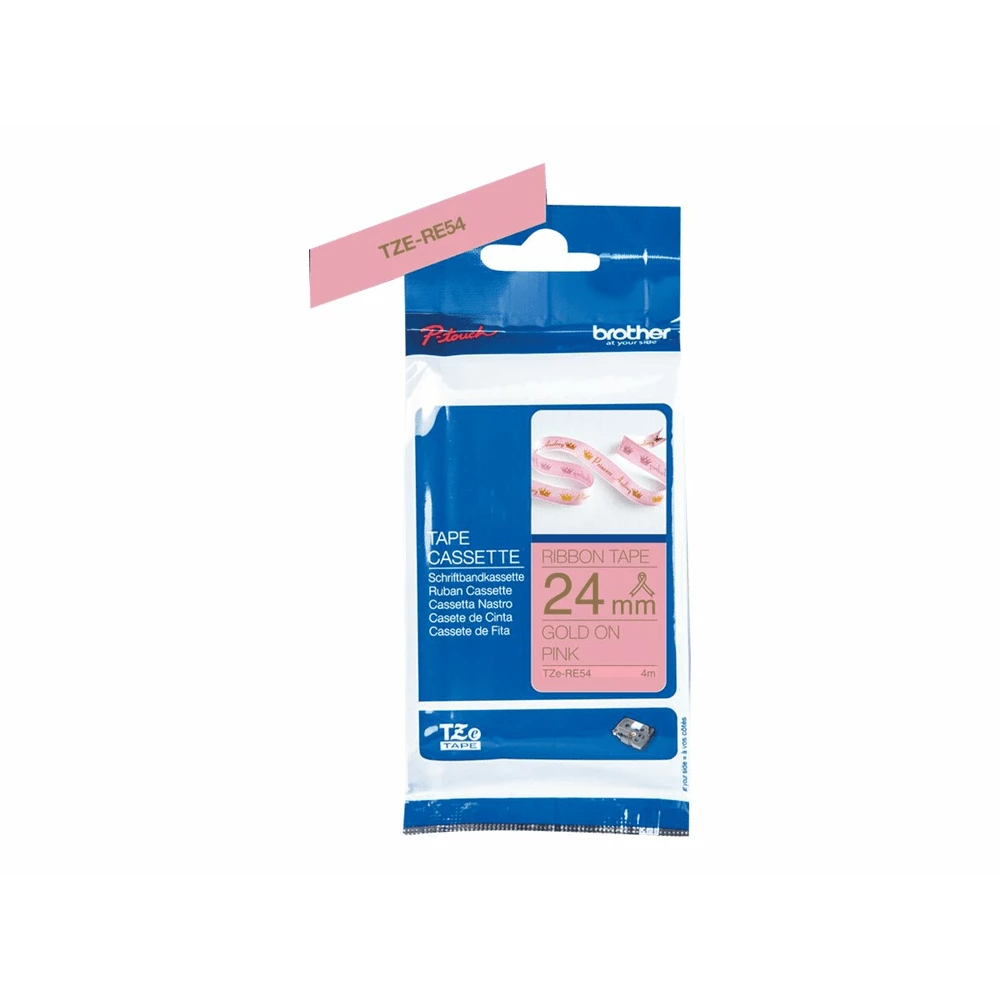 Brother Tze Re54 Seidig Gold Auf Pink Rolle 24 Cm X 4 M