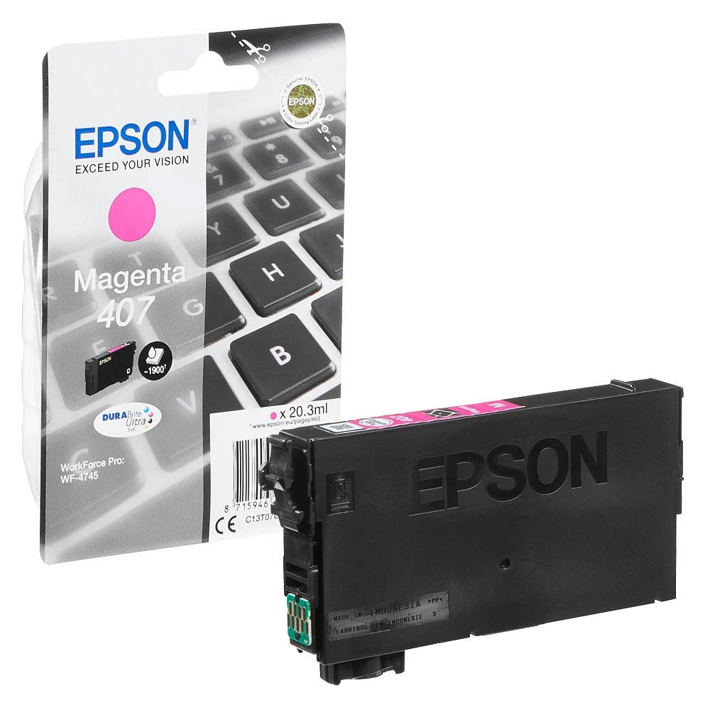 Beste Qualität zum besten Preis – Original Epson 407 / C13T07U340 Tinte Magenta bis zu 1900 Seiten 20ml – Original Epson WorkForce Tinte – Magenta – Jetzt günstig kaufen!