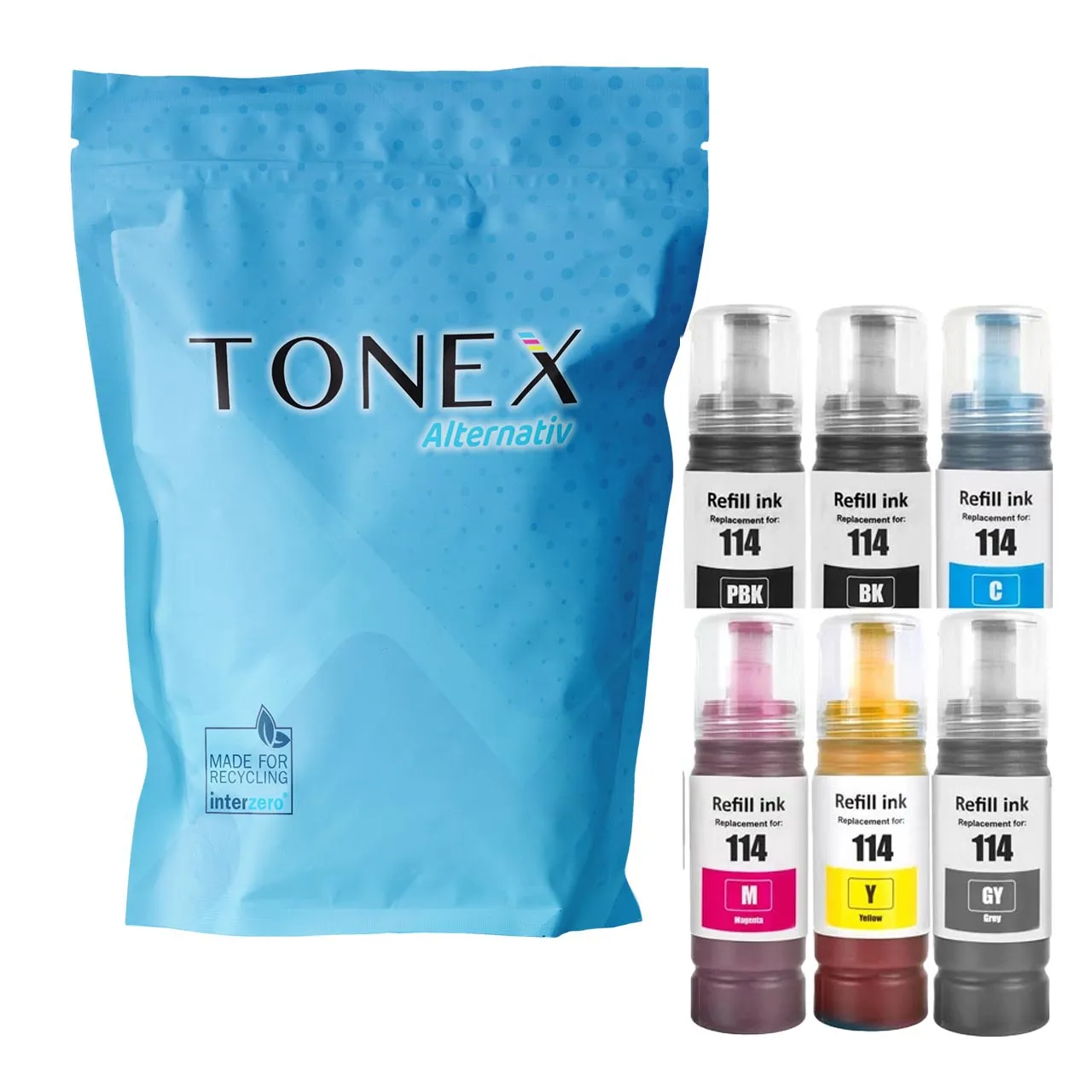 Beste Qualität zum besten Preis – TONEX alternativ für Epson 114 Tinte Schwarz Cyan Magenta Gelb Grau Foto Schwarz bis zu 2300 Seiten Multipack – Alternativ Epson ECOTANK Tinte – Schwarz, Cyan, Magenta, Gelb, Grau, Foto Schwarz – Jetzt günstig kaufen!