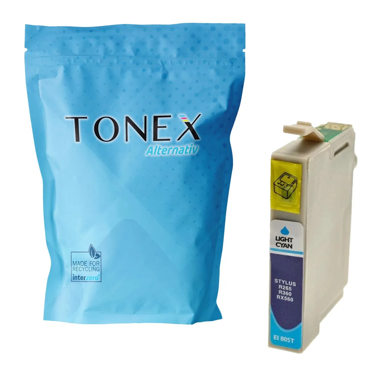 Spare 9,54 € im Vergleich zum Original – TONEX alternativ für Epson T-0805 / C13T08054011 Tinte Cyan (Hell) bis zu 330 Seiten – Alternativ Epson Stylus Photo Tinte – Cyan (Hell) – Jetzt günstig kaufen!